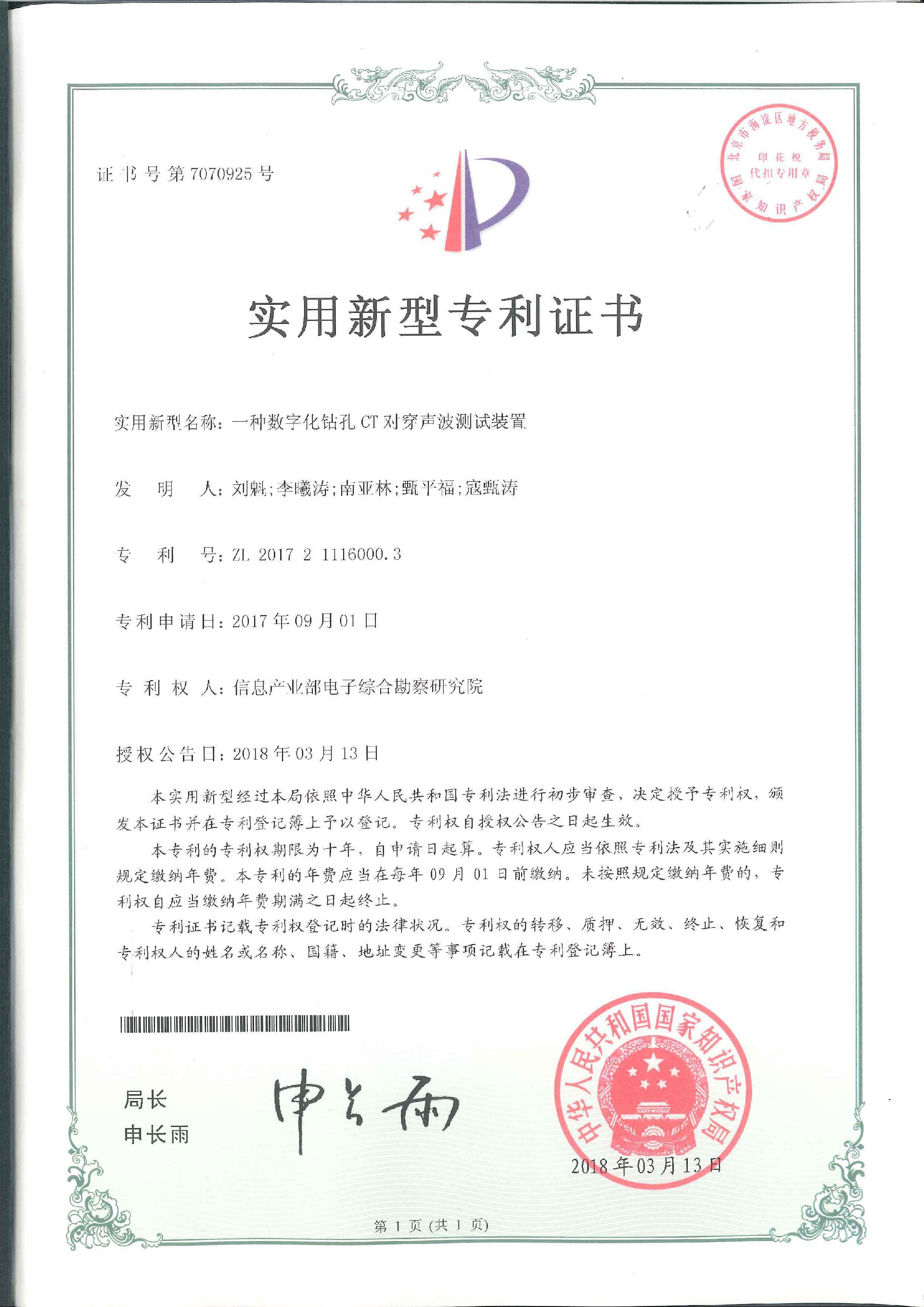 2018一種數(shù)字化鉆孔CT對穿聲波測試裝置
